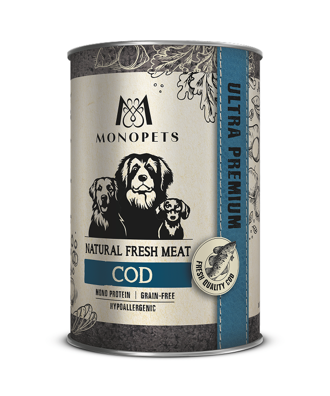 Alle leeftijdenHypoallergenic grain-free canned food with fresh codAlle groottes